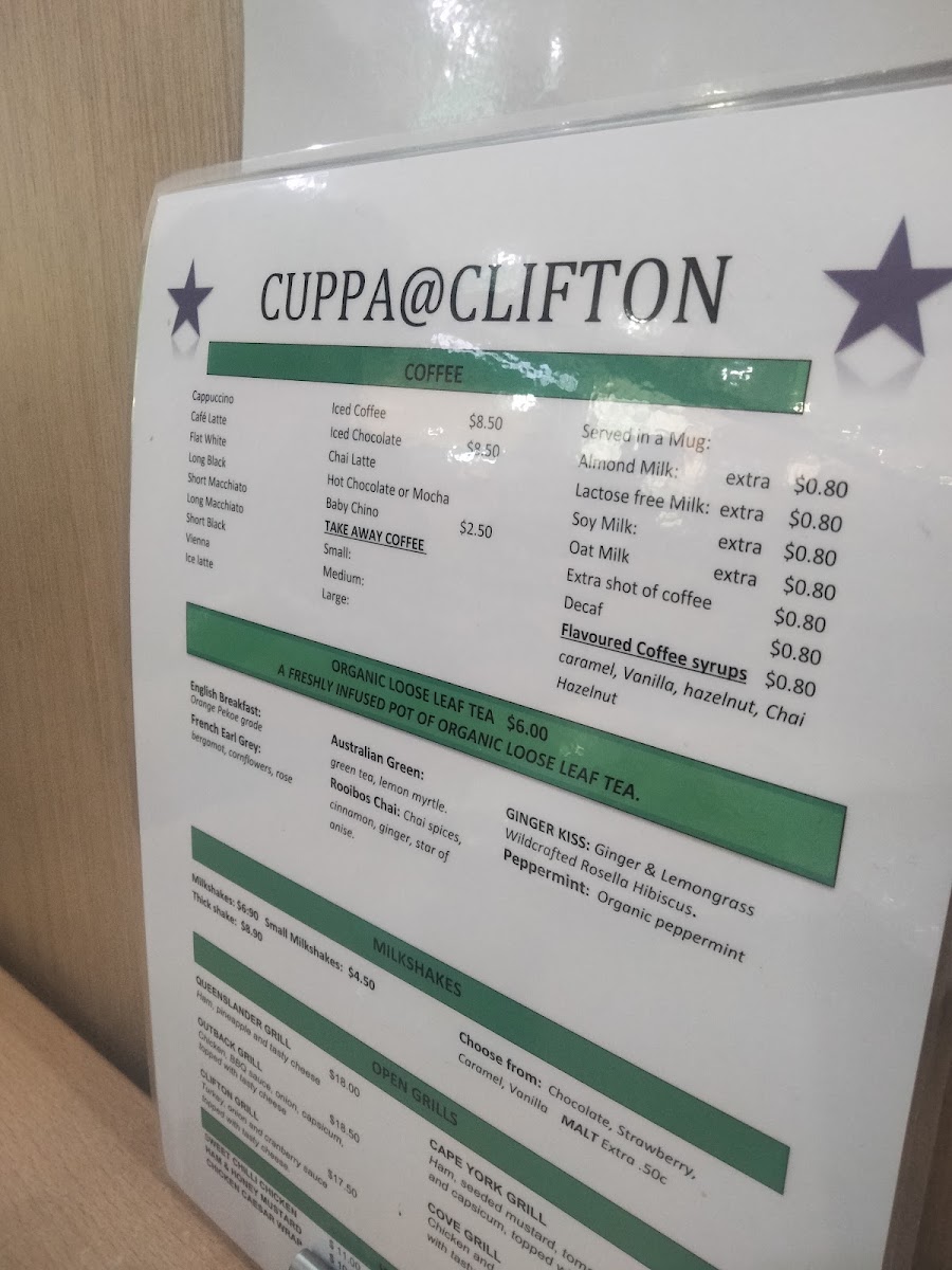 The reviews say it all, with customers like John B Schilt highlighting the pleasant atmosphere and welcoming vibe, making it a go-to spot for both locals and visitors. Adrian Styles and Giac Dee also express their love for the food and the amiable service, showcasing the café as not just a place to eat but a space that creates genuine connections. Moreover, Bec R couldn’t help but appreciate the thoughtful service that goes above and beyond, a testament to the care Cuppa@clifton puts into their customer experience.